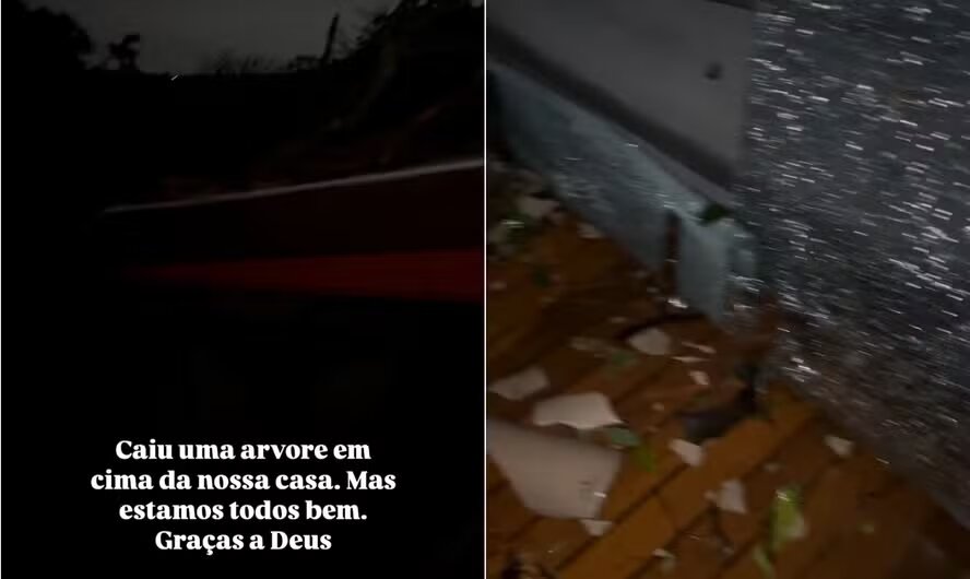 Ele mostrou o estrago na estrutura da residência, mas fez questão de tranquilizar seus seguidores ao afirmar que a família passa bem apesar do susto.