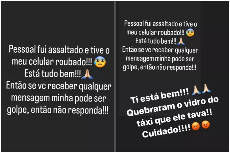 Thiago se mostrou bastante preocupado com possíveis golpes que possam ser aplicados pelos bandidos, em seu nome. Diante disso, ele alerta: “Se você receber qualquer mensagem minha pode ser golpe, não responda”.