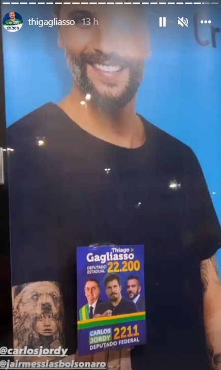 Deve ser difícil ser Thiago Gagliasso, afinal, enquanto seu irmão deslancha em carisma e uma carreira que triunfa, o outro decidiu ficar do lado da oposição do irmão e perdendo os laços que os une. O que a gente sabe é que ele não perde a oportunidade de usar a imagem do irmão, nos stories o irmão de Bruno se depara com a imagem do irmão em propaganda para uma empresa e não deixou de aproveitar para fazer campanha política.