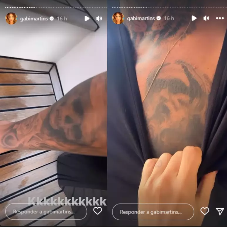 Gabi ainda revelou que essa não é a primeira vez que o namorado tem que cobrir uma tatuagem que foi feita para ex-namorada, e que desta vez, no lugar do rosto da mulher, ele tatuou uma caveira.