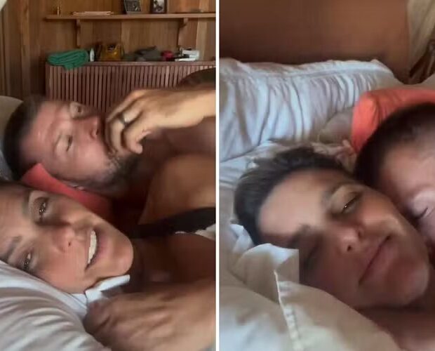 Em seguida, ela atende o desejo do marido, mas reclama. “Agora tá calor”, diz. Mas o bonitão nega. “Olha que delícia”, diz ele. O casal ainda avisou que o momento entre os dois foi flagrado durante um cochilo da tarde.
