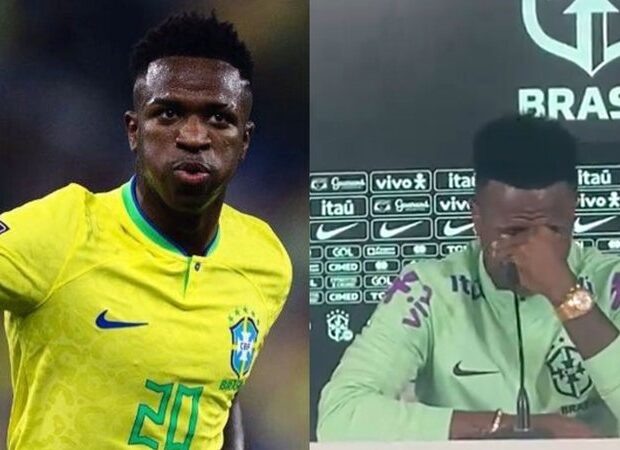 Vini Jr. não segurou o choro ao contar sua história cercada de racismo no futebol brasileiro e internacional. O jogador foi escolhido pela Confederação Brasileira de Futebol (CBF) para falar com os jornalistas em uma coletiva nesta segunda-feira, 25, e ficou bastante emocionado ao falar a respeito da luta contra o racismo dentro e fora do esporte.