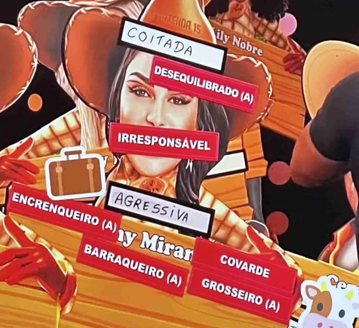 A ex-peoa ainda participou do jogo das placas, que não foi transmitido para os outros participantes que estão no confinamento e distribuiu muitos adjetivos ruins para sua rival de jogo, Jenny Miranda: coitada, desequilibrada, irresponsável, agressiva, encrenqueira, covarde, barraqueira e grosseira.
