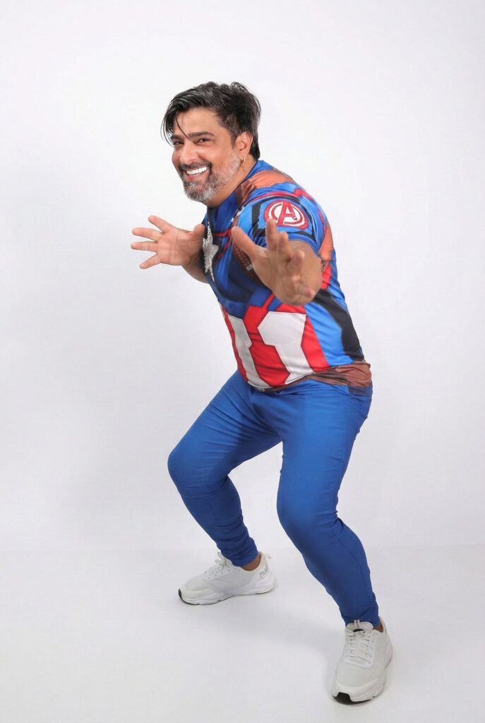 Alessandro não ficou de fora da brincadeira e resolveu virar o multiverso ambulante do forró. Entrou em cena como Batman, Superman, Capitão América e até Coringa, provando que o homem canta, troca de figurino e ainda sustenta personagem sem perder o fôlego. Eu chamo de dedicação artística com pitada de loucura saudável.