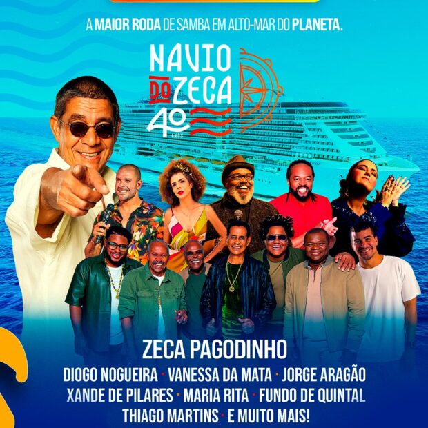 Acompanhado de grandes artistas, o “Navio do Zeca – 40 Anos” faz parte da turnê especial “Zeca Pagodinho 40 Anos”, e navegará entre 6 e 9 de dezembro, entre Santos (SP), Rio de Janeiro e Búzios (RJ). O embarque e desembarque acontecerão no Terminal de Passageiros do Porto de Santos.