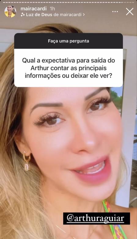 Nas redes sociais, Maíra abriu uma caixinha de perguntas e um seguidor perguntou sobre como ela passaria as informações para Arthur após sua saída. No entanto, a empresária está interessada em algo diferente.
