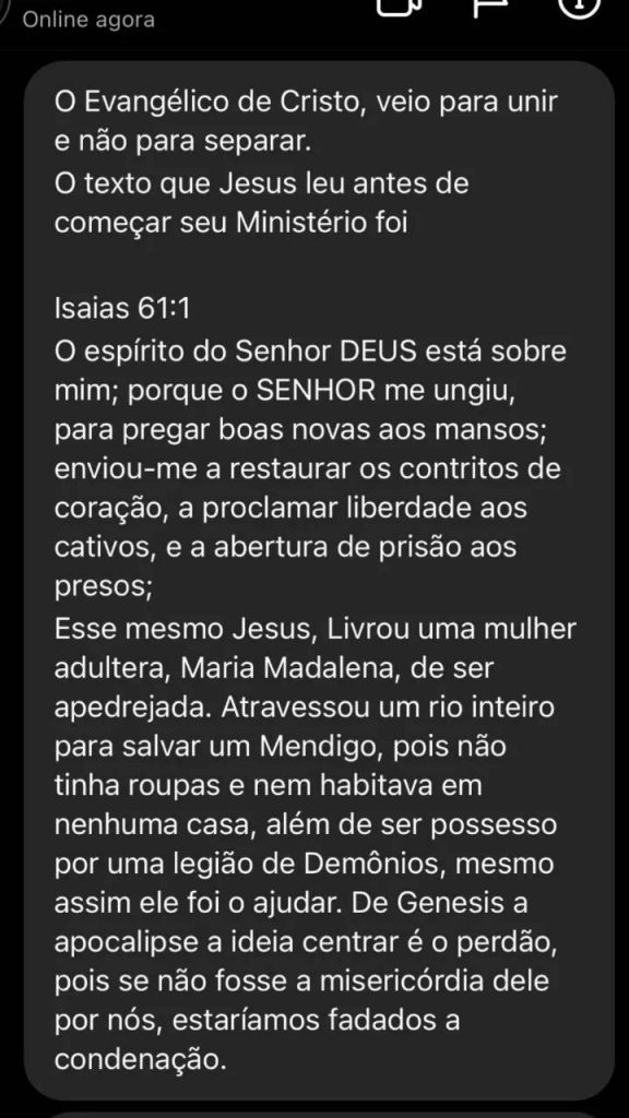 “Servir e cuidei voluntariamente durante 8 anos de moradores de rua em BH, e conheço os realmente vagabundos e oportunistas de longe”, começou o pastor em sua postagem nos stories do Instagram.