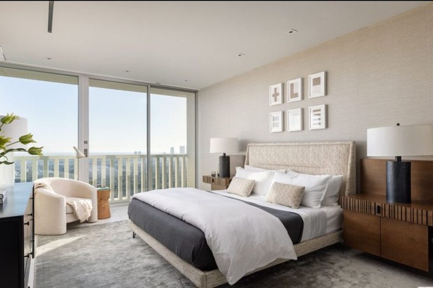 O apartamento luxuoso, que fica no 22º andar e tem vista panorâmica de Los Angeles, tem 2 quartos e 2 banheiros. De acordo com o site, a atriz comprou o imóvel em 2014 por US$ 3,55 milhões (em torno de R$ 18,7 milhões) e fez algumas reformas.