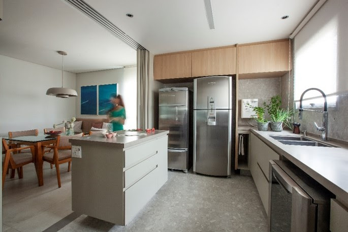 Uma maneira interessante para deixar a cozinha com ainda mais possibilidades é a inclusão de uma ilha no projeto. O recurso, que pode estar centralizado no meio do cômodo ou separado da pia por alguns metros, constitui-se em mais uma bancada de trabalho, seja para preparar os alimentos ou mesmo para acomodar os utensílios e deixá-los de fácil acesso. Em alguns projetos, é comum a inclusão de um cooktop na ilha, ampliando ainda mais as possibilidades de uso.