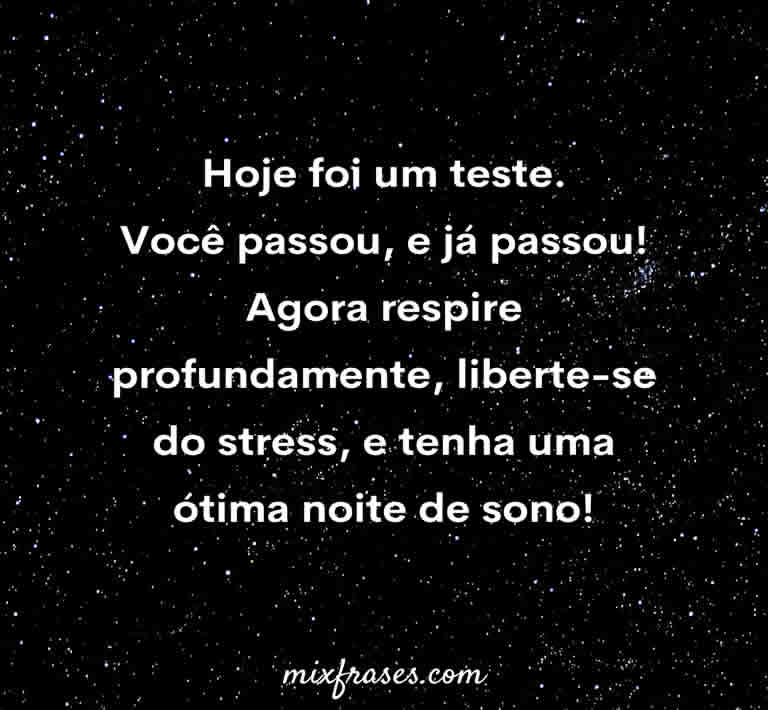 Hoje foi um teste, você passou, e já passou! Agora respire profundamente, liberte-se do stress, e tenha uma ótima noite de sono.