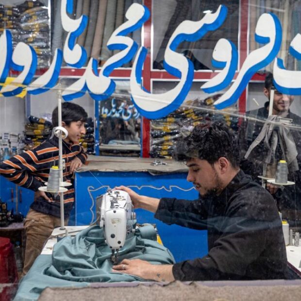 “Claro que é difícil, mas é nosso trabalho e é o que as pessoas querem”, disse Abdul Farooq Azimi, um artesão e alfaiate de 28 anos que desfruta de uma pequena pausa no seu banco.