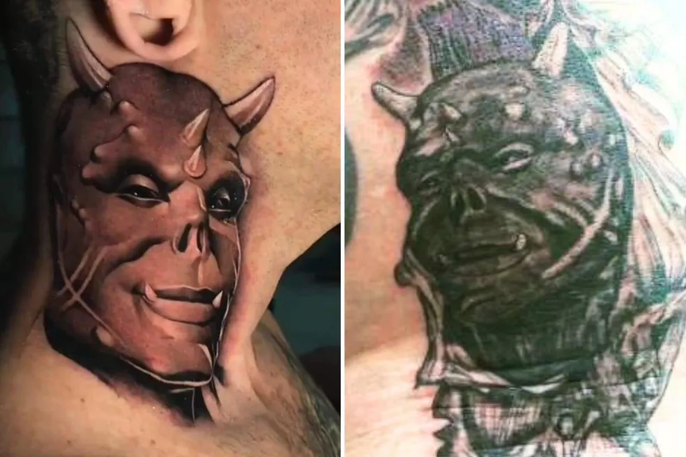 Dois fãs de Michel Praddo, também conhecido como ‘Diabão’, tatuaram o rosto do homem na pele.