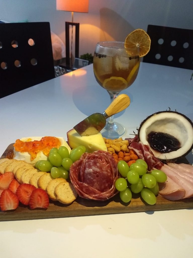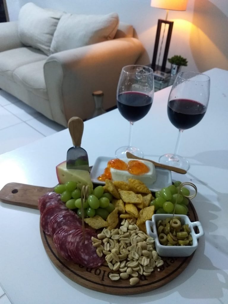 Crie uma atmosfera agradável, música ambiente, luz de velas, monte uma linda grazing food para compor a sua mesa, aproveite o momento regado de boas conversas, boas risadas, excelente histórias e muito amor e carinho. Porque compartilhar momentos com quem gostamos é o que importa!