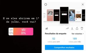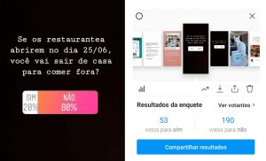 No Stories, a pergunta era se o seguidor tinha a intenção de ir a restaurantes em julho. O resultado foi 79% para a opção “não” e 21% para o “sim”.