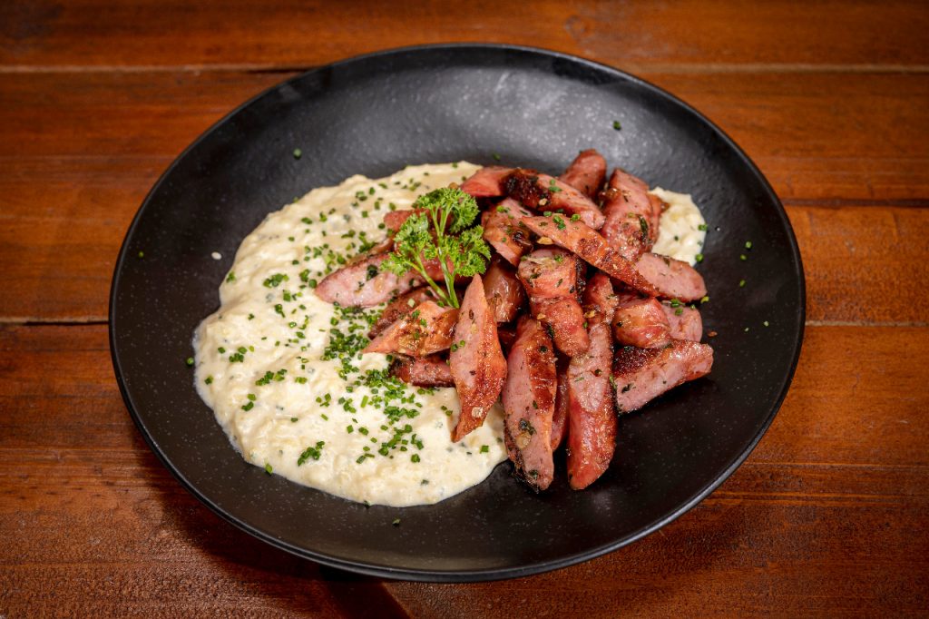 Linguiça apimentada com creme de milho. Foto: Produtora Ktdral/Divulgação