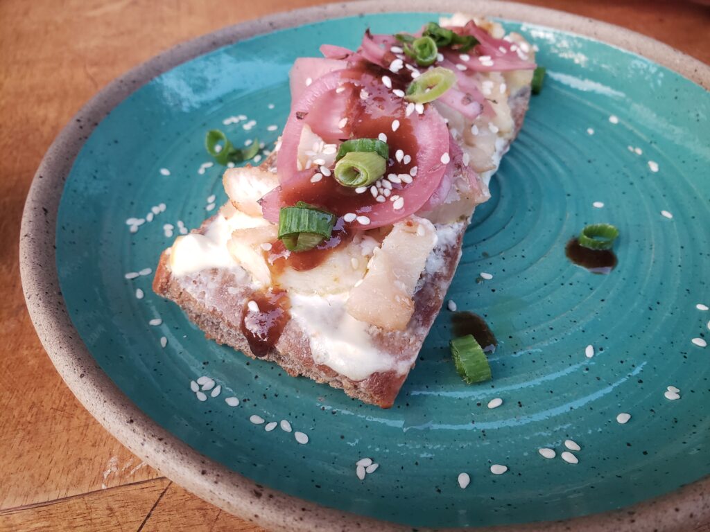 Aplausos para a tosta de escabeche de Pirarucu de manejo, cream cheese, picles de cebola roxa, cebolinha, gergelim e redução de balsâmico (R$ 29). Deliciosa! Também amei a Banoffee, super equilibrada, como creme fresquinho feito com baunilha Kalunga.