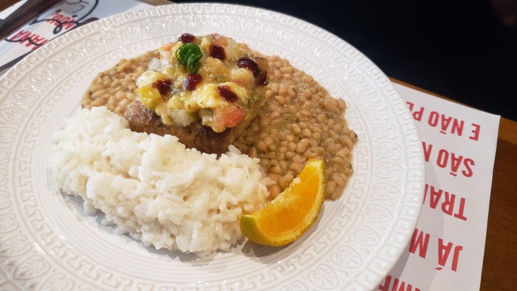 Palmas para os petiscos, variados e muito bem executados, como as iscas de pirarucu empanado na tapioca, torresmo de barriga levemente curado, com limão caipira e ketchup de goiaba e um sensacional caldinho de sururu com leite de coco!
