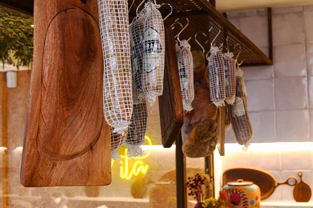 A casa tem variadas opções na charcutaria e, ainda, o cliente pode montar a sua tábua na hora, ela serve de 1 até 6 pessoas. Entre as opções: salames, presunto cru, copa lombo, queijos, frutas, castanhas, frutas secas, geleia e fatias de pão de fermentação natural, que são ideais para compartilhar com grupos de amigos. Os preços variam de acordo com o tamanho.