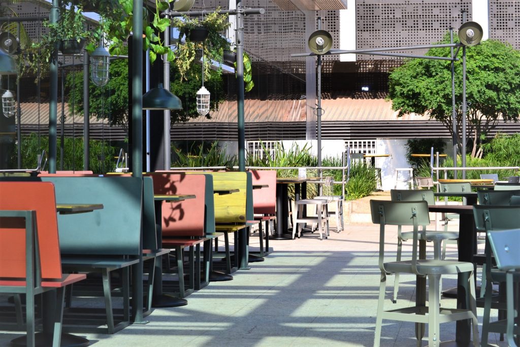 O projeto tem cara industrial, com cadeiras de ferro, concreto e tubulações aparentes. Para dar aconchego, as áreas interna e externa receberam vasos de plantas. Já a cozinha é aparente, permitindo que os consumidores acompanhem o preparo dos lanches. A área total de 285m², comporta cerca de 100 assentos e inclui agradável espaço externo para receber os clientes e seus pets.