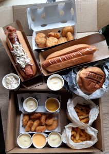 A primeira delas se chama Tudo Junto e vai com Bulldog (pão, salsicha húngara enrolada no bacon e coleslaw), um Hot Dog (pão, salsicha húngara e mostarda), um Standard (pão, carne, queijo), dois Chicks Bites (8 pedaços de peito de frango, empanados com uma casquinha leve e macia), uma Crinkles (batatas da casa temperadas com páprica) e uma Cheese Fries (batatas da casa temperadas com páprica e queijo derretido).