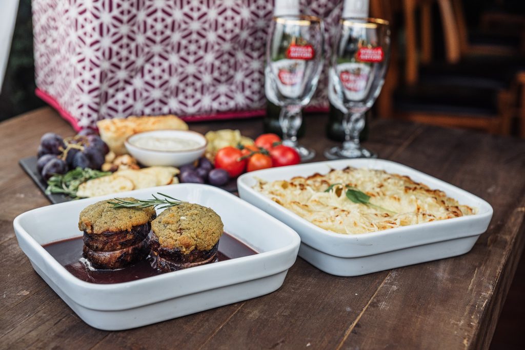 Para quem deseja ficar em casa, a sugestão é encomendar uma cesta para o(a) amado(a). O kit dos namorados (R$ 299) é composto por entrada para dois (ver cardápio) + prato principal para duas pessoas (ver cardápio) + sobremesa (uma de cada opção do cardápio), uma bebida alcoólica que pode ser vinho tinto: 4 Estaciones Icon Autumn – Malbec – (750m); vinho branco: 4 Estaciones Icon Summer – Chardonnay – (750ml) ou combo Stella Artois – 2 taças personalizadas pelo artista local + quatro long necks Stella Artois, além de itens para decoração como a cesta térmica, vela, jogo americano.