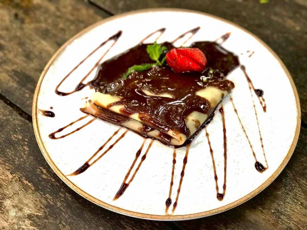 - Salada, um dos pratos principais do dia e sobremesa (mini crepe de Nutella com morangos) por R$ 54,00;