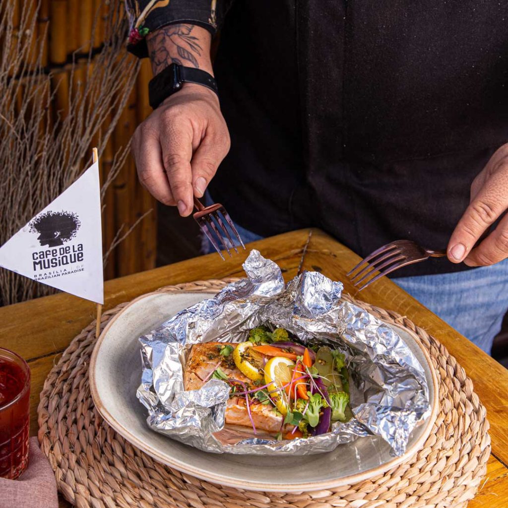 “É com grande alegria que recebi esse convite de trabalhar nessa vibe do Cafe De La Musique, junto com outros chefs de renome. O cardápio oriental é bem eclético, com peixes e frutos do mar que todo brasiliense já conhece, porém o que estará em destaque são os temperos nacionais com toque oriental. A elaboração foi pensada em um formato para que todos possam saborear e desfrutar com facilidade essas delícias que preparamos com muito carinho”, adianta o Chef Akaki Maki.