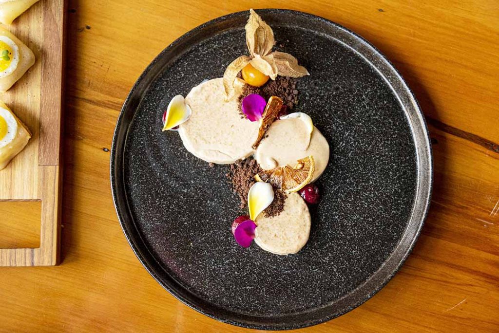 Panna cotta de doce de leite com terra de chocolate cítrico. Foto: Fernando Pires