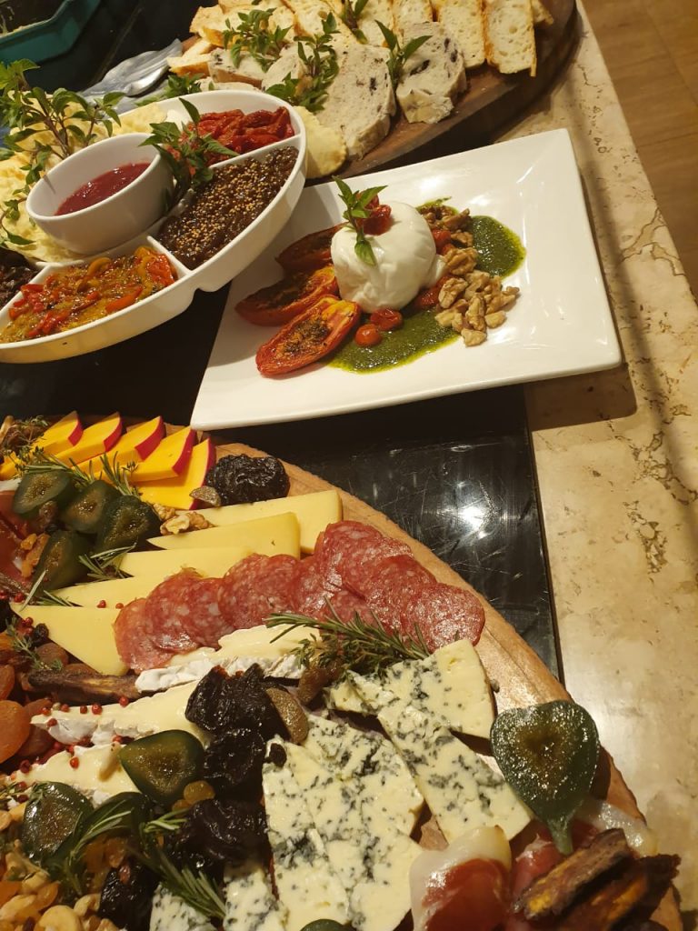 – Tronco natalino (recheio de castanhas portuguesas e rum, leite condensado, chocolate branco com licor e cobertura de névoa de brigadeiro branco e ninho)