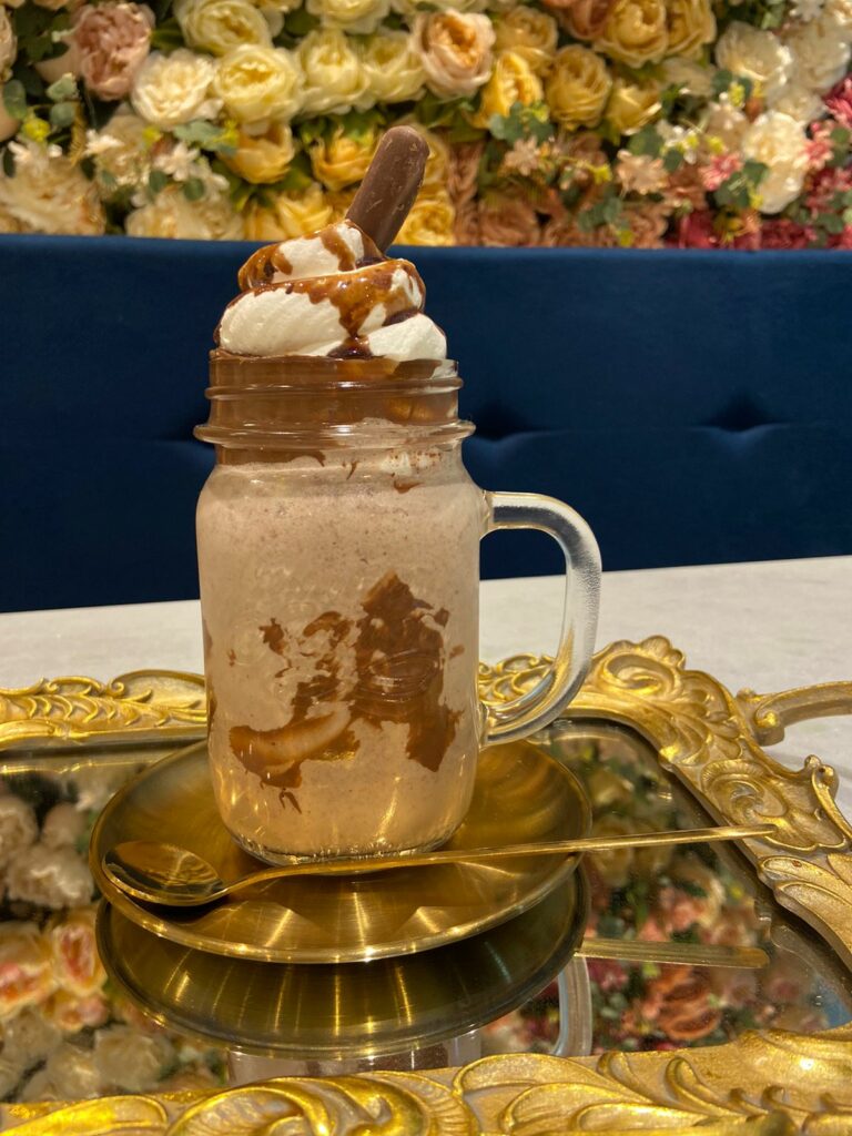 Quanto aos cafés, a casa traz o café gelado de pistache; o café com Nutella; e o café gelado com Donuts, receitas exclusivas do Café de Andrade. O cardápio conta ainda com sucos naturais, espumantes e chás diversos.