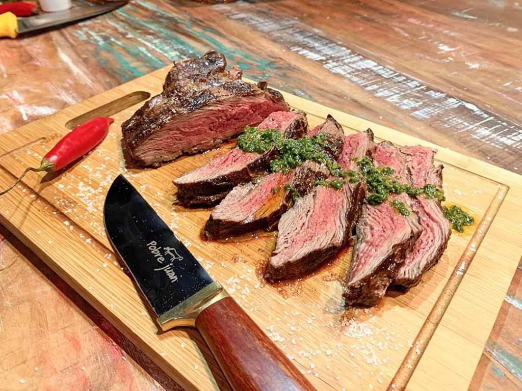 Entre os cortes nobres estão a picanha e o filé mignon importado da Argentina, além da costela premium, bife de chorizo e bife ancho, todos da linha Angus, entre outros cortes suínos e aves.