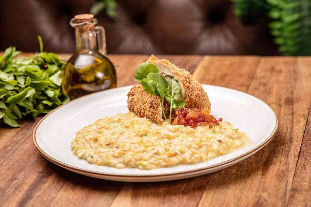Agora, para quem gosta de se aventurar em opções mais ousadas, a sugestão fica por conta do Pollo contê: filé de frango recheado com muçarela de búfala e presunto, empanado na farinha panko, servido com risoto primavera e chutney de abacaxi (R$ 38). Outra opção deliciosa é o Risoto de ossobuco (R$ 59). Promete!