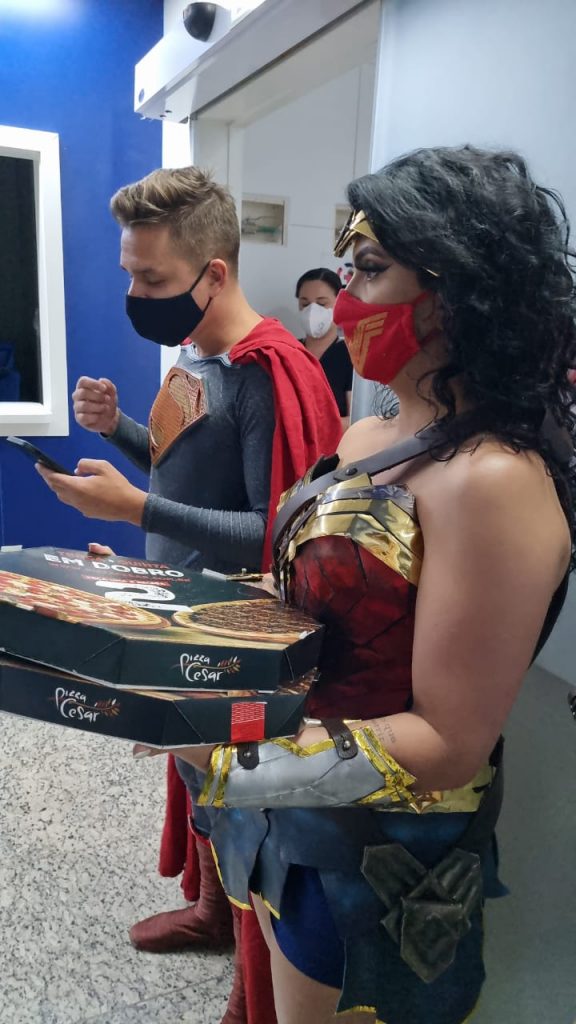 A ideia partiu juntamente com o psicólogo Sabino Dourado Júnior, amigo de parte da diretoria de Pizza César. Seu pai, o pastor Sabino Dourado, ficou dois meses internado com Covid19 na UTI até que, infelizmente, veio a falecer. Em seu discurso aos profissionais, ele agradeceu por estar representando todos os filhos, todos aqueles que perderam alguém. “Me sinto muito honrado de estar aqui diante de vocês para agradecer a todos os cuidados ao meu pai que ficou 64 dias internado aqui e Deus levou”. Vestido de Super Homem, foi uma forma de fazer alusão à heroicidade dos enfermeiros.