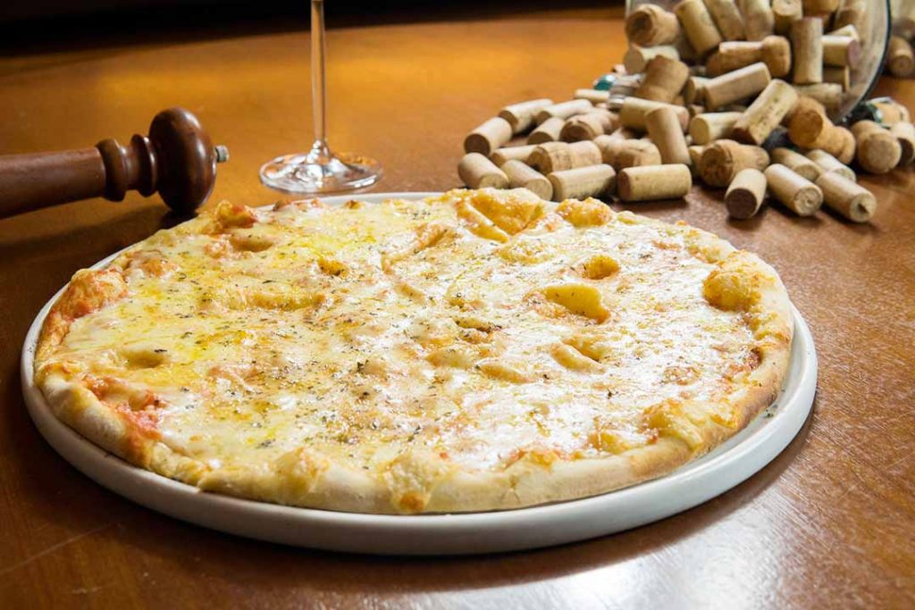 Pizza e vinho Dolce Far Niente. Foto: Thiago Bueno