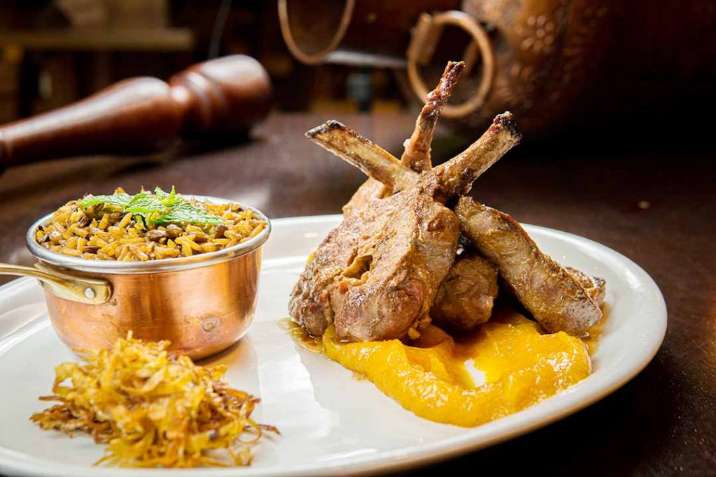 No Empório Árabe Restaurante, a pedida pode ser uma Costela de Cordeiro (costela com geleia de damasco e arroz com lentilhas) combinada com o vinho tinto Malma Esencia Malbec. Para quem prefere uma carne branca, o Frango ao Molho de Amêndoas (coxa e sobrecoxa de frango, ao molho de amêndoas fatiadas, acompanhadas de legumes cozidos e arroz branco) harmoniza bem com o Malma Esencia Pinot.
