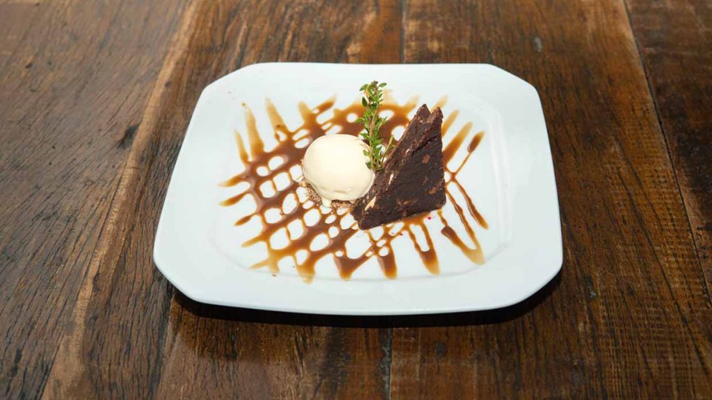 - Brownie: brownie de chocolate belga com calda de capuccino e sorvete de baunilha;