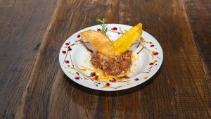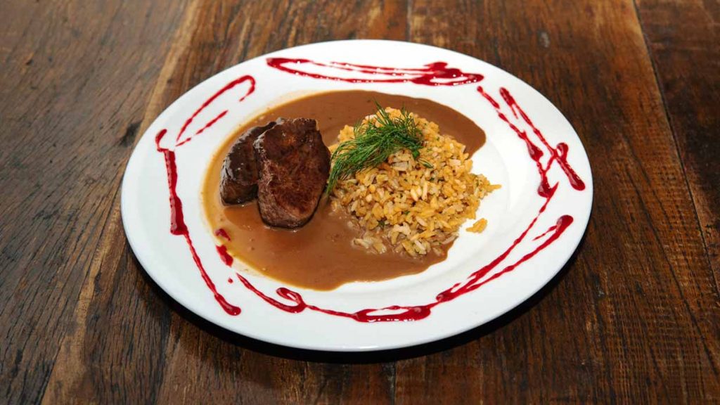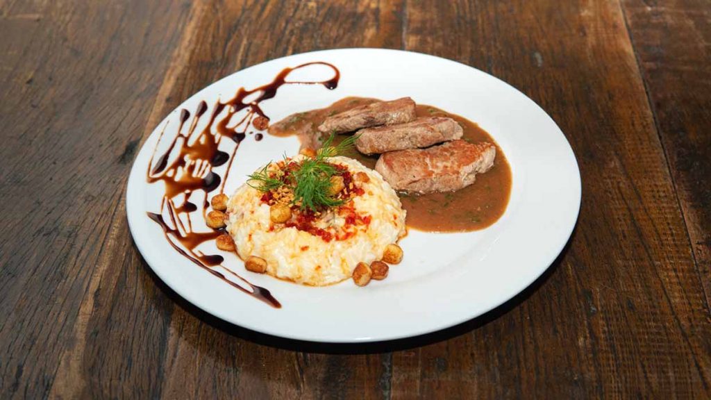 - Filé suíno: filé grelhado ao molho do campo acompanhado de arroz cremoso com dadinhos de queijo coalho salpicado com geleia de pimenta e alho crocante.