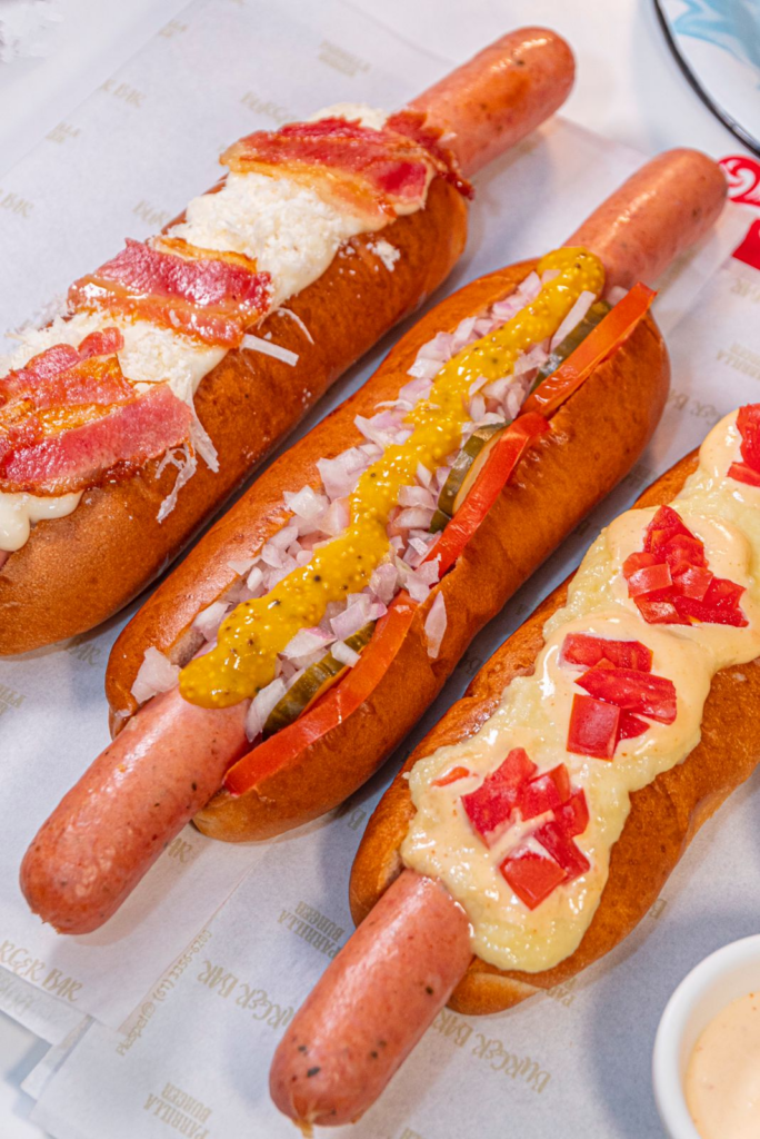- Bacon Caramelo (R$ 20): salsicha especial, candy bacon, aioli e nuvem de parmesão.