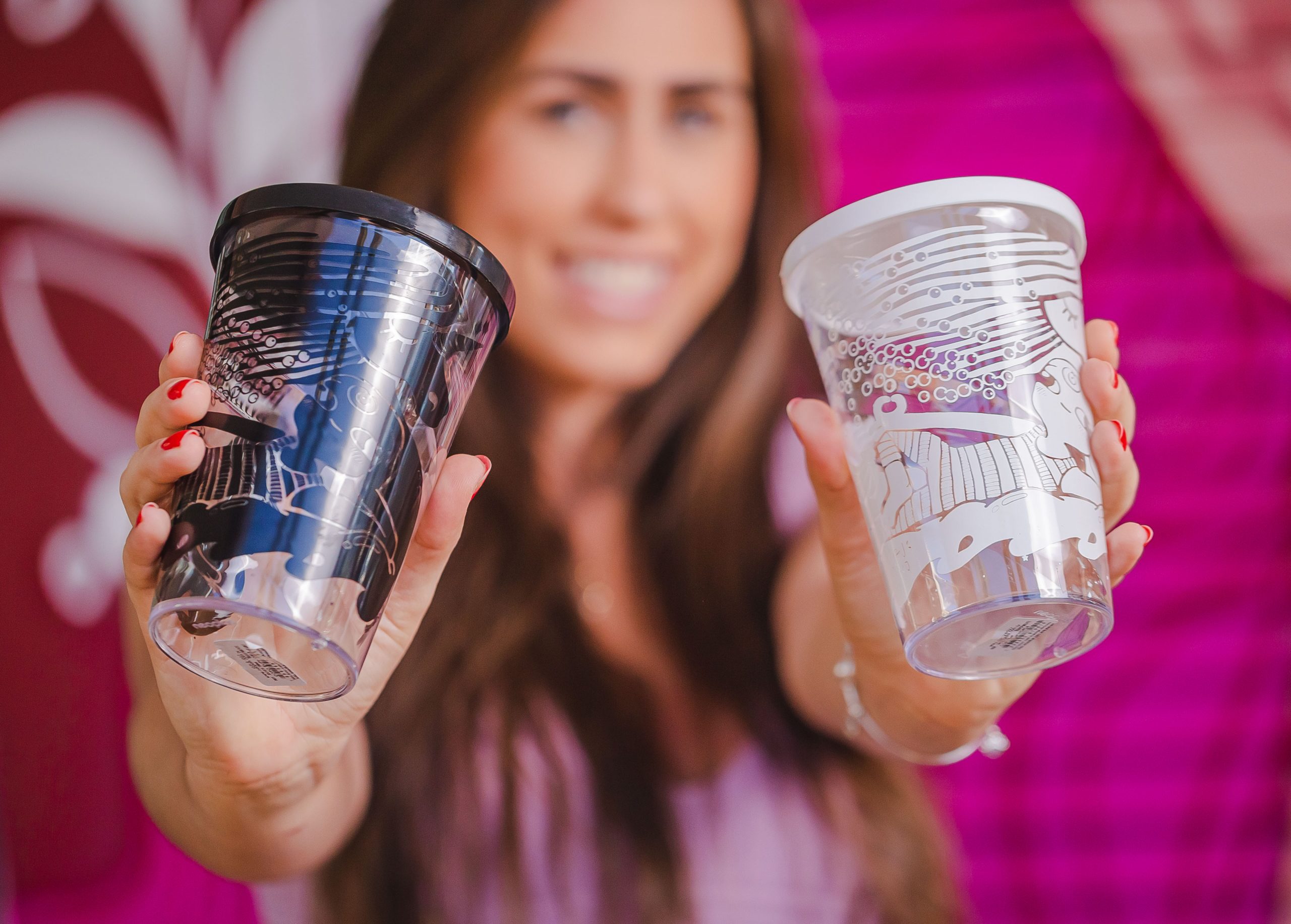 Quase todo brasiliense já esbarrou com o simpático Gurulino pelas ruas do Distrito Federal. O personagem estampa muros e casas da cidade e, agora, decora também uma linha de copos reutilizáveis da rede Açaí Puríssimo. Ao lado de Pedro Sangeon, criador do personagem Gurulino, a segunda artista a apoiar esse movimento de reciclagem é Camilla Siren, responsável por grafites que estampam diversos pontos da capital. Camilla escolheu a Deusa de Brasília para estampar os EcoCopos.