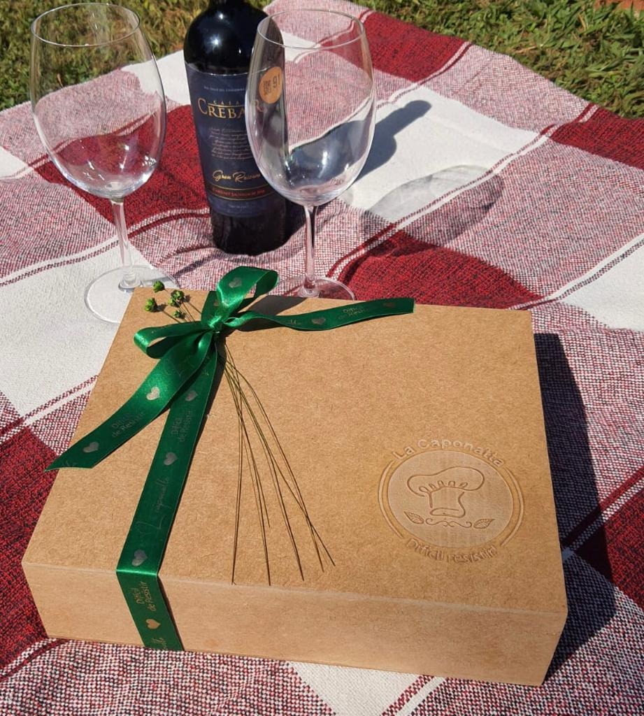 Os clientes recebem em casa todos os pratos embalados lindamente para presente ou para fazer bonito na hora de montar um jantar romântico. Para essa data tão especial, a caixa está ainda mais sofisticada, com uma linda fita personalizada e a logomarca da La Caponatta. Para personalizar a experiência, os clientes podem optar pelas seguintes opções disponíveis no cardápio, como o tradicional Baba ghanoush (pasta de berinjela), Coalhada seca, Homus (pasta de grão-de-bico), Kibe cru, kibe frito tradicional, kibe assado, Lasanha de berinjela, Molho de tomate caseiro ao sugo, Pasta de atum e Caponata (antepasto de berinjela em pedaços), tudo acompanhado de pães sírios. Os valores variam de acordo com a quantidade escolhida (consultar disponibilidade).
