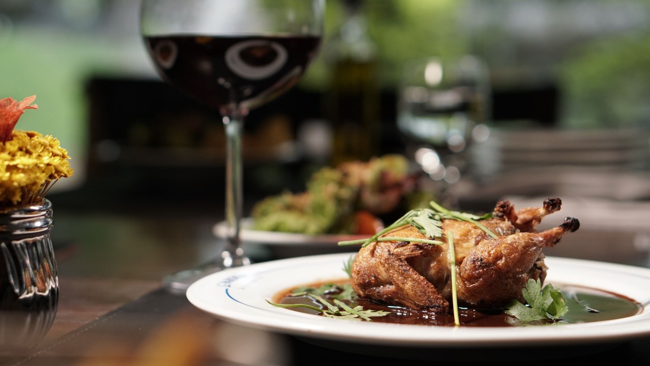 Outra pedida do restaurante é a saborosa codorna (codorna recheada com cogumelo paris e molho demi-glace, acompanha uma pequena salada de alface frisé com vagem, tomate confit e farofa de copa – R$ 74).