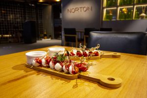 E agora, a partir do mês de novembro, o Restaurante Norton inaugura o serviço de Bar, de segunda a domingo, das 16h às 23h, com deliciosos petiscos, cervejas e drinques especiais, e happy hour com descontos no segundo drinque até às 20h. Quem preparou o cardápio foram os Chefs Myriam Carvalho e Victor Silva. Como destaques, os clássicos Mini caprese de palito (R$32) e o Dadinho de tapioca com geleia de pimenta (R$32), os andinos Duo de ceviche (R$42) e os Patacones de polvo (R$42) e os irresistíveis Bolinhos de mandioca com queijo (R$35) e a Polenta crocante ao molho gorgonzola (R$30).