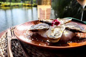 - Ostras frescas, que serão servidas com limão, sal, azeite e pimenta
