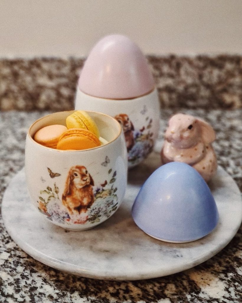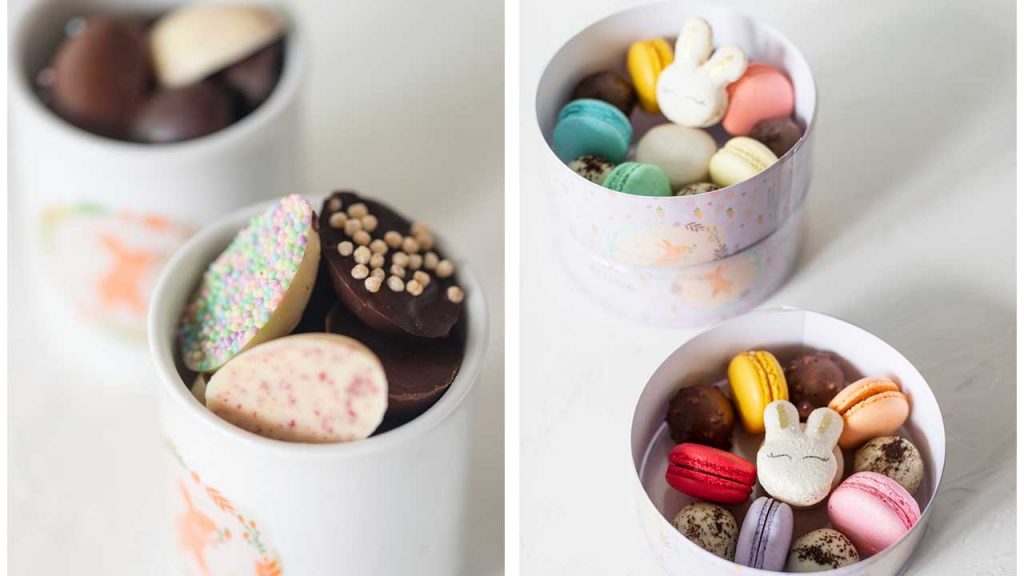 O Nube Café e Confeitaria preparou combinados que misturam doces e peças exclusivas de porcelana pintadas à mão pela artista plástica @ro_porcelanas. Entre as opções: Copinho P, composto por um copo de porcelana com estampa exclusiva recheado com 12 meio ovinhos de chocolate sortidos; Caixa sortida, feita em acetato com estampa exclusiva, acompanhada de 6 macarons tradicionais, 5 trufas e um macaron de coelho (R$60); Porcelanas exclusivas, sendo duas opções. A primeira é um ovo liso de porcelana recheado com 15 macarons (R$290) e o segundo, ovo relevo com coelho de porcelana recheado com 12 macarons (R$320).