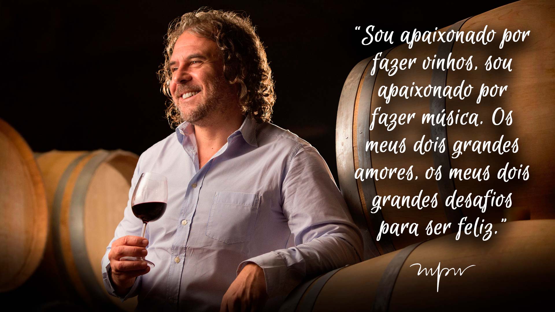 “Quando eu conecto meu violão e posso tocar uma melodia que me excita, sinto que tudo está em ordem, que meu mundo vale a pena. Depois ando pelas vinhas, sinto o esforço de um a ano e posso sentar-me para criar os novos cortes, aqueles vinhos que penso capturar o mistério do tempo. Eu sinto a harmonia perfeita do meu trabalho com a magia da natureza”.