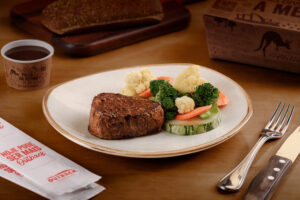 O prato da promoção, o Victoria’s Filet, traz um corte suculento de filé-mignon, de aproximadamente 200g, preparado na chapa, no ponto de preferência do cliente, e vem com molho Merlot. Para acompanhar, é possível escolher dentre variedades como Garlic Mashed Potato, Homemade Golden Potatoes, Aussie Mac n’ Cheese, El Ranchito, fritas, entre outras. Todos, é claro, feitos com o característico Bold Flavour do Outback.