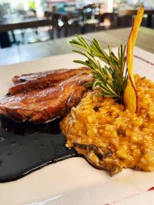 No Taypá, a opção é o Tomahawk na Brasa (chaufa com mix de cogumelos e vegetais na churrasqueira com chimichurri apimentado), R$ 246,00 para duas pessoas.