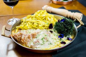 O público pode optar pelo Filetto alla Parmigiana (coberto com muçarela, gratinado com molho pomodori e queijo Gouda no forno a lenha, servido com fettuccine na manteiga) ou pelo Paillard (filé-mignon batido e finamente grelhado, servido com talharim ao molho béchamel, gratinado no forno a lenha com parmesão).
