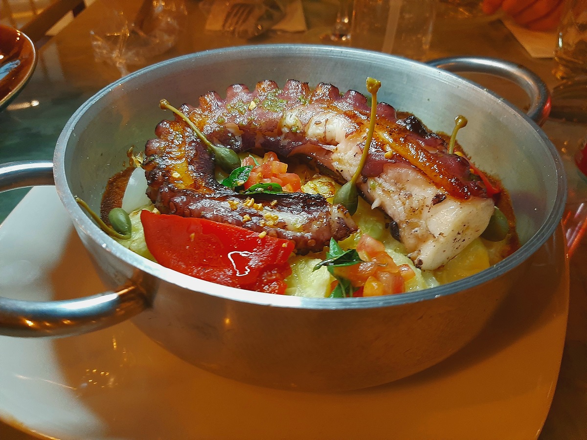 Croquetes de lula com arroz na tinta do molusco, maionese de limão e tentáculos fritos (R$ 39); ostras crocantes no pão negro com maionese de curry e batatas fritas (R$ R$ 34 e R$ 62); mexilhão na panela ao vinho, manjericão, azeite e tomates (R$ 59) e carpaccio de polvo com chips de alcachofra, alcaparrones e azeite de limão e alho (R$ 89) completam as sugestões de entrada.