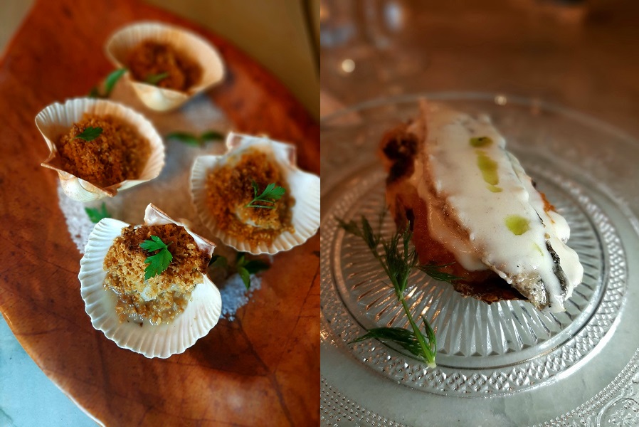 Na cozinha, são destaques as churrasqueiras para assar peixes, camarões, ostras, polvos, lulas, mexilhões e apenas dois cortes de carne vermelha, para quem não aprecia os frutos do mar. De lá também saem os pães do courvert e da bruschetta de sardinha, depois da fermentação de 24 horas; as berinjelas os pimentões e as cebolas que compõem outras receitas. Ou seja, prepare-se para sabores defumados, aliados a elementos cítricos, cremosos e suculentos.